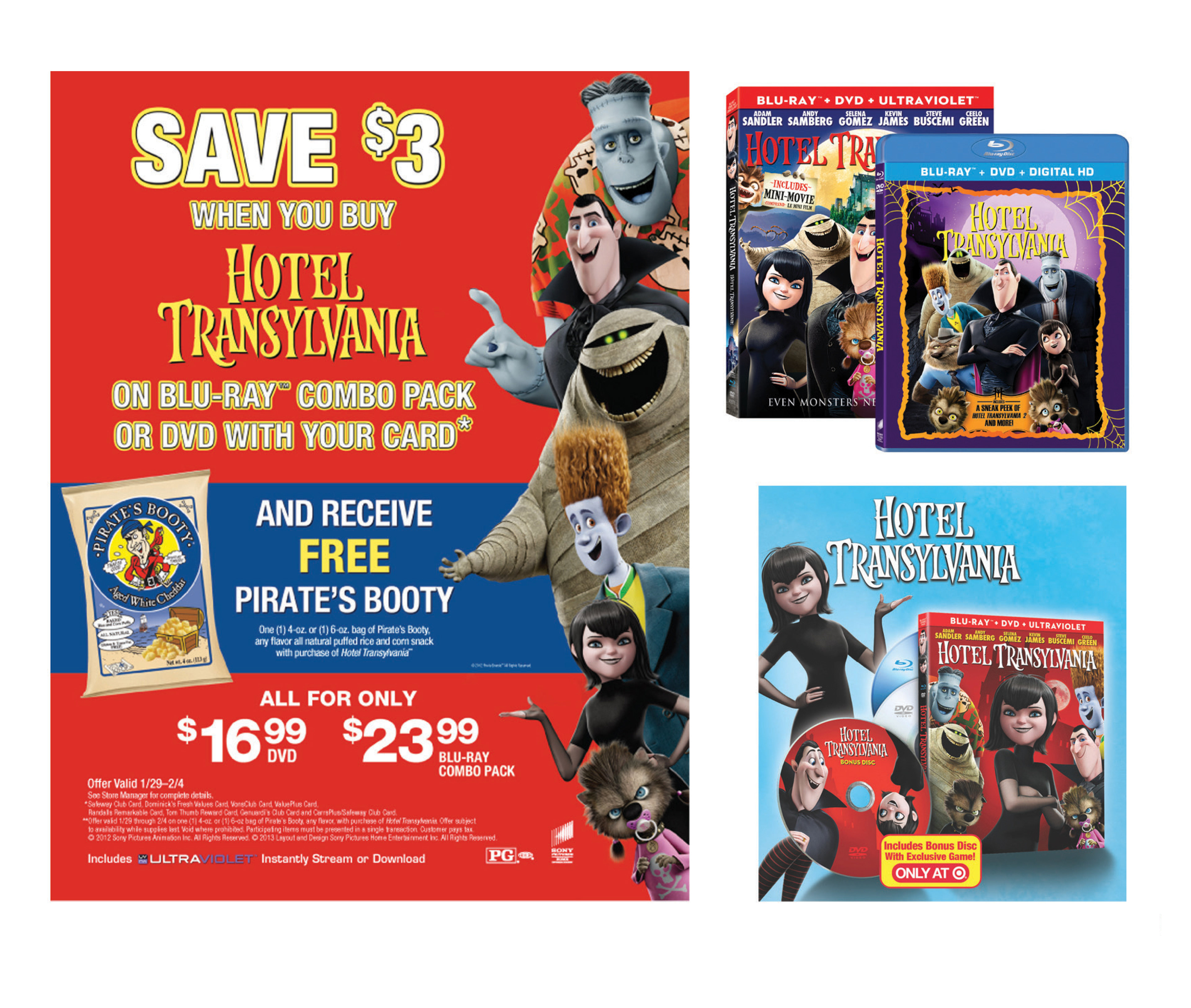 Hotel Transylvania Trade Ads, Blu-ray and DVD Packaging, Digital Assets. Designed promotional ads, POP Headers and digital assets.